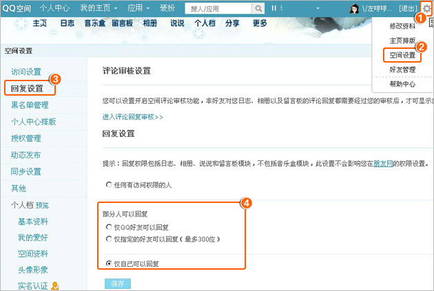 出现以上提示,是由于您的好友,在空间设置回复设置中,将回复的权限设置成了“只有部分人可以回复”、“仅自己回复”,因此您在好友空间留言,就会提示您无权发表留言。
