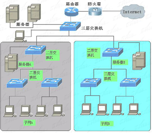 前面我们介绍到,三层交换机也具有一定的“路由”功能,可以实现不同子网的连接。但要注意的是,它的路由功能相对路由器来说还是要弱许多的。三层交换机的路由功能只能用于同一类型的网络互联,而且通常只是局域网子网之间的互联,并不能把局域网与广域网,或者互联网连接起来,因为三层交换机所支持的路由协议非常有限,毕竟这不是它的主要功能。