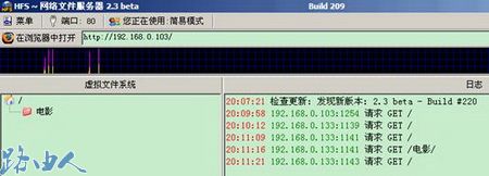 (1)文件服务器的IP地址设置为:192.168.0.103,并且共享了一个叫做电影的文件夹。