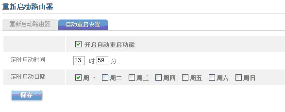 (1)在路由器配置界面的系统工具—重新启动中,通过自动重启来设置路由器在指定时间定时重启。