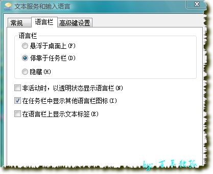 盘--如图:选中“停靠于任务栏”再选中“在任务栏显示其它语言图标”