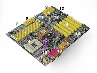 一块主板主要由线路板和它上面的各种元器件组成