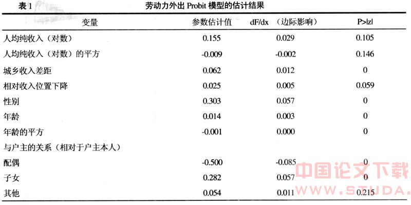 三、劳动力外出决策模型(Probit模型)