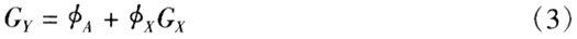 其中φA和φX为农业和非农业部门的收入份额,GA和GX为农村和非农业收入的基尼系数,而且φAX=1;其中非农业的收入份额可以分解为资本和劳动份额: