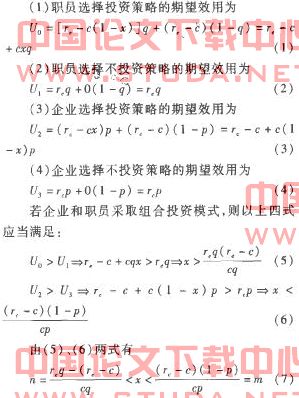 在培训投资的组合模式思想基础上,运用博弈论分析培训投资成本的组合方式,得出了关于确定企业投资比率取值范围的计算式,并将投资组合模式与贝克尔模式结合起来。因此,(7)式为企业在人力资本培训投资过程中确定投资策略和投资比率提供了决策依据。同时该式也体现了职员策略对投资比率的影响,反映出并非企业投资越多就越好。