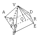 如图,过两个几何体的高线VP、VQ的垂足P、Q分别作BC的垂线,则垂足重合于O,且O为BC的中点,OP延长过A,OQ延长交ED于R。由特征 Ⅲ,∠AOR为二面角A—BC—R平面角,结合特征Ⅰ、Ⅱ,可得VAOR为平行四边形,VA//BE,所以V、A、B、E共面,同理V、A、C、D共面,所以这道题的答案应该是5个面!