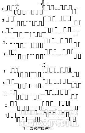 在变频法中,原则上要求供电电流为单频正弦波。但由于技术上的原因,实际应用的多为正反向供电的方波电流。由傅立叶分析可知,方波电流中不仅包含了基频(和方波同频率)正弦波,而且还包含了3,5,7,9等奇次谐波电流。如果以基频正弦波强度为1,那么n次奇次谐波